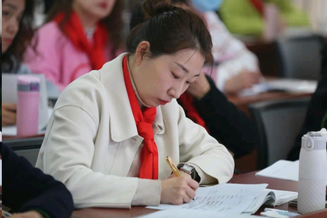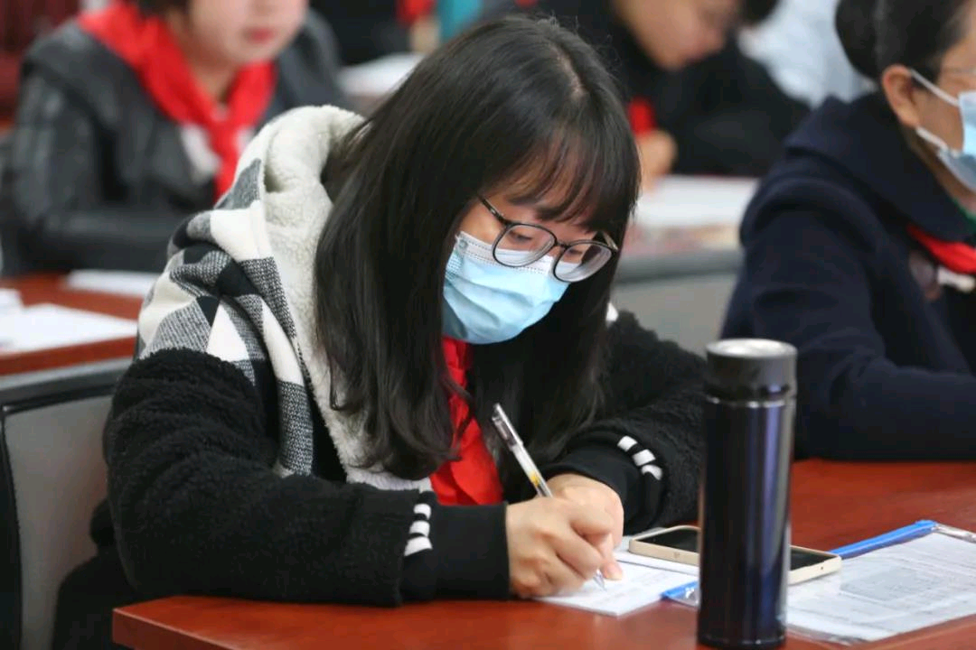参培辅导员认真听课、记笔记